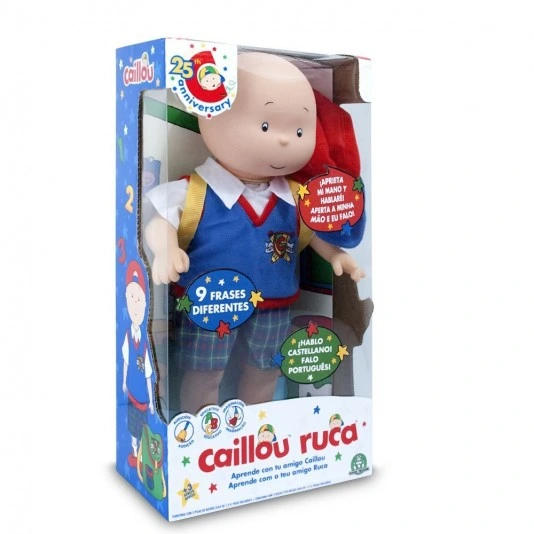 El Muñeco Interactivo Caillou de Giochi Preziosi es el compañero perfecto para los más pequeños. Basado en el querido personaje de televisión, este muñeco de 35 cm no solo invita a abrazos y aventuras, sino que también habla 9 frases en castellano y portugués, enseñando números, colores, animales y las estaciones del año.